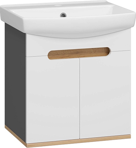 Тумба под раковину Сканди 50 подвесная белая/дуб крафт золотой/антрацит
