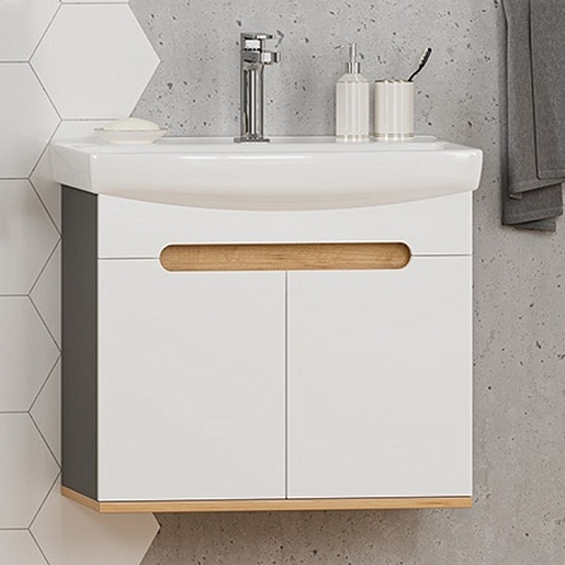 Тумба под раковину Сканди 60 подвесная белая/дуб крафт золотой/антрацит