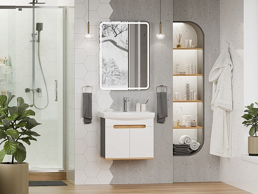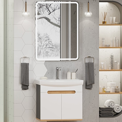 Misty Мебель для ванной Сканди 60 подвесная белая/дуб крафт золотой/антрацит