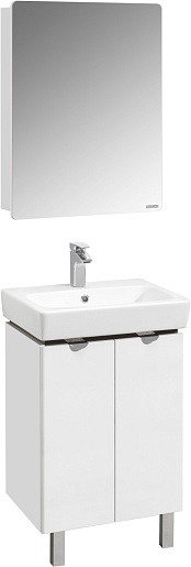 Комплектация: тумба, раковина, зеркальный шкаф, навес (2 шт.), ножка (2 шт.).