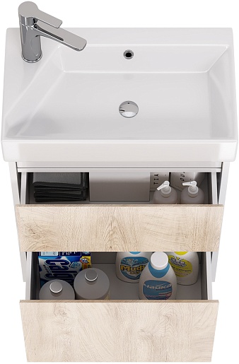 Тумба под раковину Slim 55 подвесная белая/дуб кантри