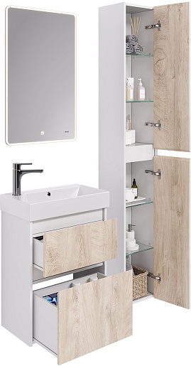 Dreja Мебель для ванной Slim 55 подвесная белая/дуб кантри