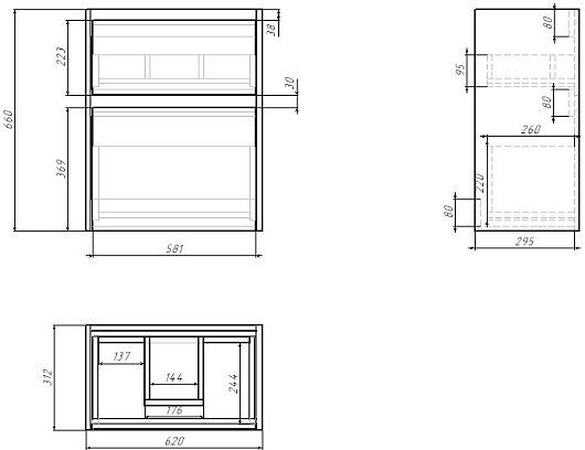 Подвесная тумба с раковиной Dreja Slim 65 - арт. 99.0401 / 17065-KL.