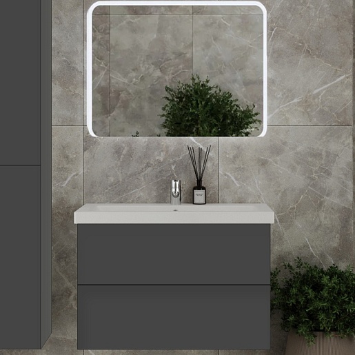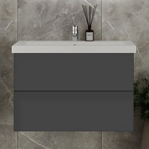 Тумба под раковину София 80 подвесная серая матовая