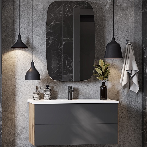 Тумба под раковину Сохо 100 подвесная дуб веллингтон/графит софт