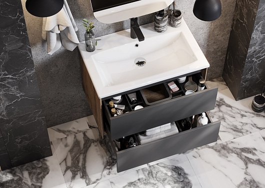 Тумба под раковину Сохо 75 подвесная дуб веллингтон/графит софт