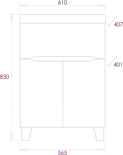 - 1 выдвижной ящик, 2 распашные дверки.