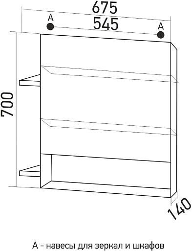 - Размер (ШxВxГ): 675x700x140 мм.