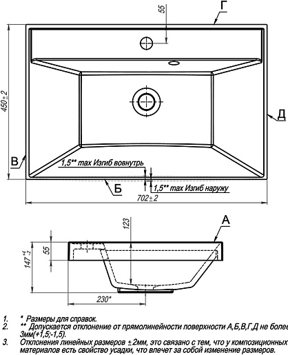 - Раковина из литьевого мрамора со слив-переливом.