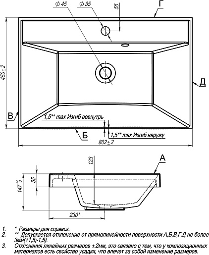 - Раковина из литьевого мрамора со слив-переливом.