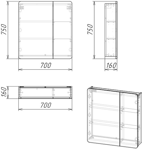 - Размер (ШxВxГ): 700x750x160 мм.