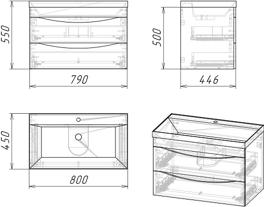 Подвесная тумба с раковиной Grossman Талис 80 - арт. 108013 / 4627173210188.