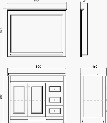 - Материал корпуса/фасада: МДФ / МДФ, зеркало.
