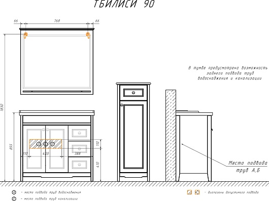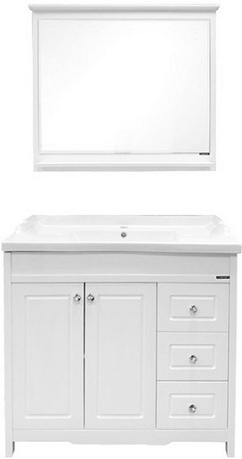 В комплекте: тумба, раковина, зеркало, ножка (4 шт.).