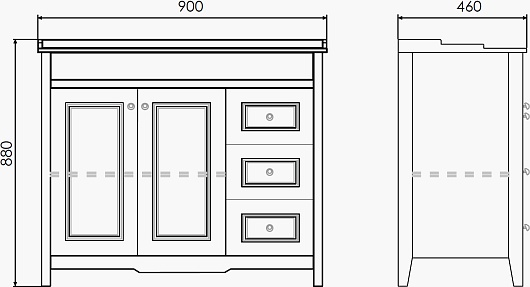 - 2 распашные дверцы, 3 выдвижных ящика.