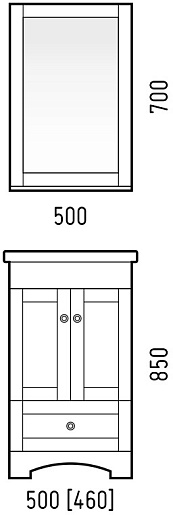 В комплекте: тумба, зеркало, раковина, ножка (4 шт.).