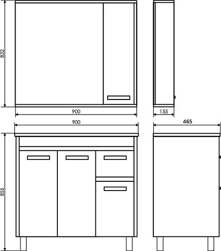 - Размер (ШxВxГ): 900x832x155 мм.