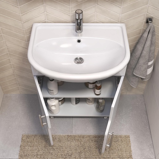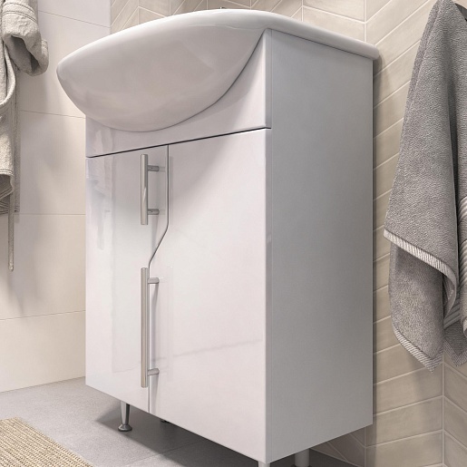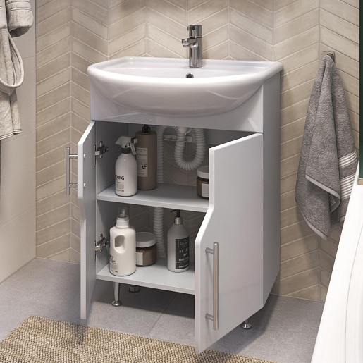 В комплекте: тумба, раковина, крепеж, ножка (4 шт.).