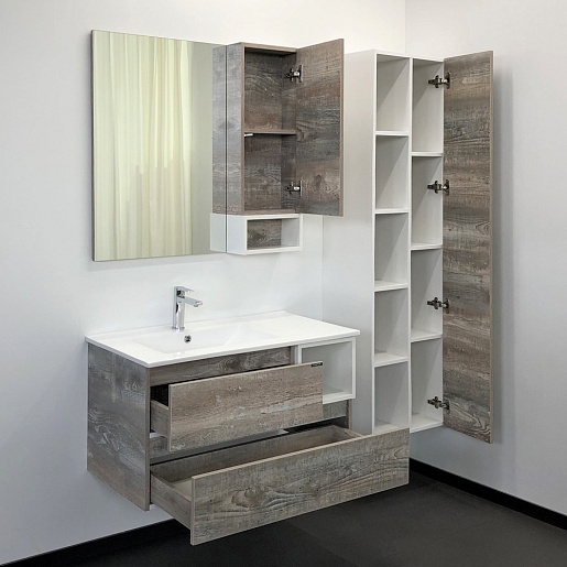 В комплекте: тумба, раковина, зеркальный шкаф, крепеж.