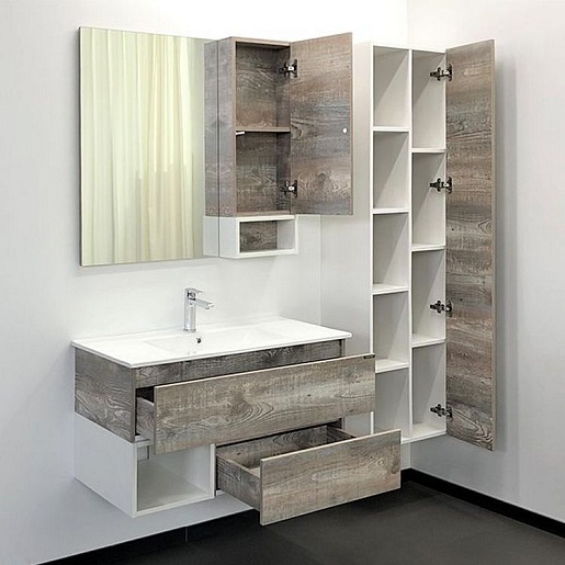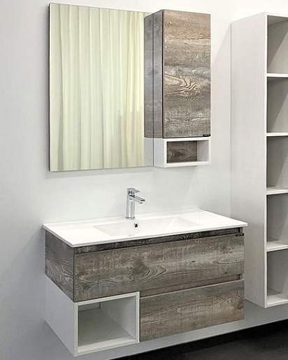 В комплекте: тумба, раковина, зеркальный шкаф, крепеж.