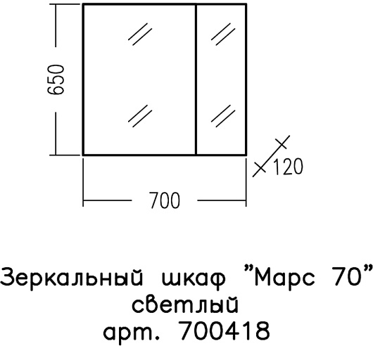 - Размер (ШxВxГ): 700x650x120 мм.
