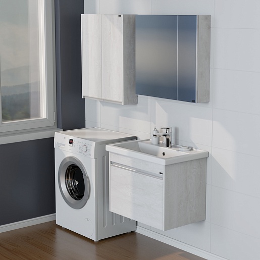 В комплекте: тумба, раковина, зеркальный шкаф, крепеж.