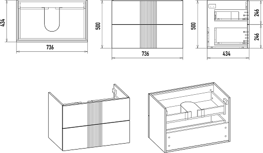 Комплектация: тумба, раковина, зеркало, крепеж.