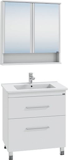 СанТа Мебель для ванной Вегас 75 2 ящика с зеркальным шкафом Вегас 80 белая