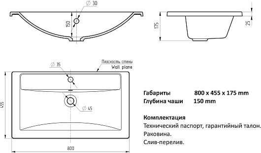 Комплектация: тумба, раковина, зеркальный шкаф, крепеж.