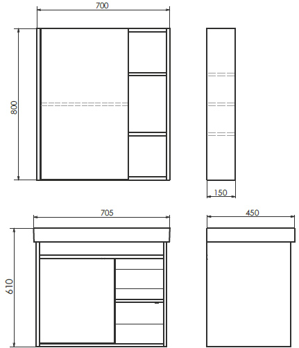 Зеркальный шкаф Вена 70 дуб дымчатый