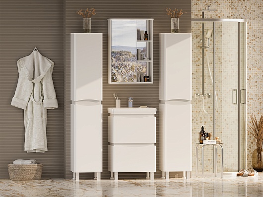 Комплектация: тумба, раковина, зеркальный шкаф, ножки, крепеж.
