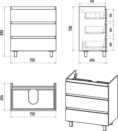 Комплектация: тумба, раковина, зеркало, ножки, крепеж.