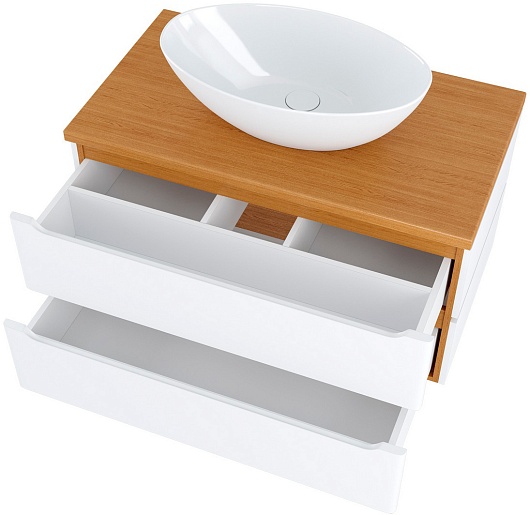 Тумба под раковину Виктория 90 подвесная белая софт/дуб светлый