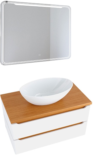 Mixline Мебель для ванной Виктория 90 подвесная белая софт/дуб светлый