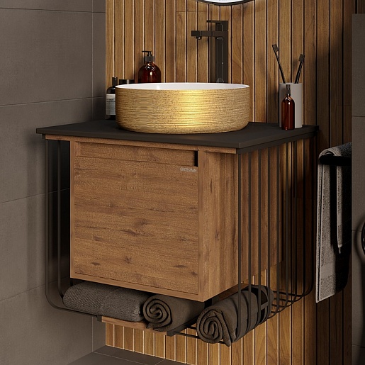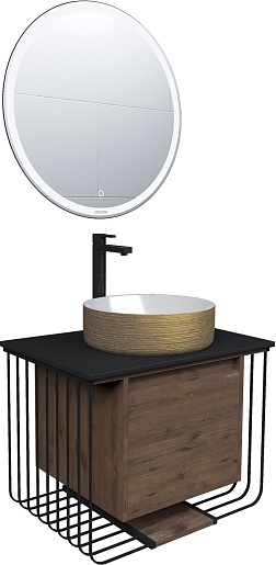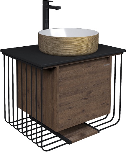 Подвесная тумба с раковиной Grossman Винтаж 70 веллингтон/металл черный - арт. 107007 / GR-5010GW.