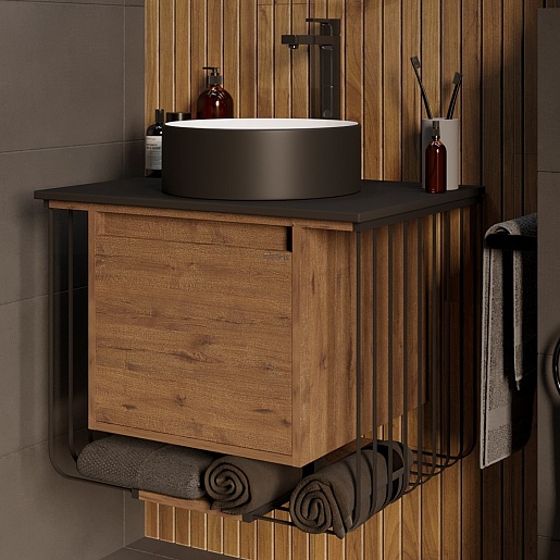 Подвесная тумба с раковиной Grossman Винтаж 70 веллингтон/металл черный - арт. 107007 / GR-4040BW.