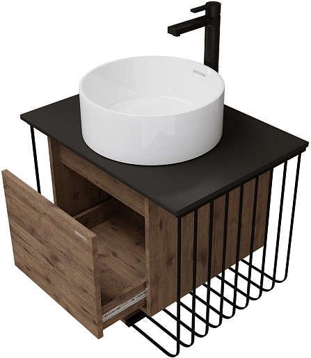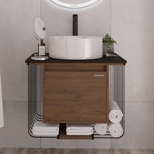 Подвесная тумба с раковиной Grossman Винтаж 70 веллингтон/металл черный - арт. 107007 / GR-3013.