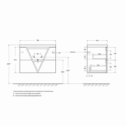 - Раковина BB800/450-LV-MR-AST