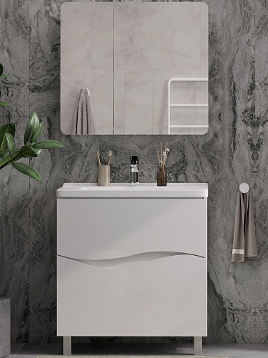 Комплектация: тумба, раковина, зеркальный шкаф, ножка (2 шт.), крепеж.