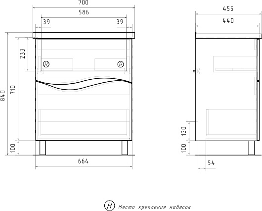 Тумба с раковиной Volna Volna 70.2Y - арт. tnVLN70.2Y-01 / 1WH302250.