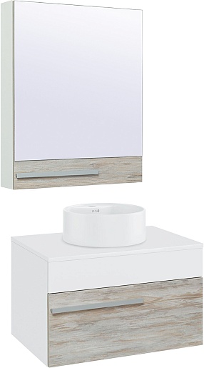 Runo Мебель для ванной Вудлайн 65 Sole скандинавский дуб/белая с зеркальным шкафом