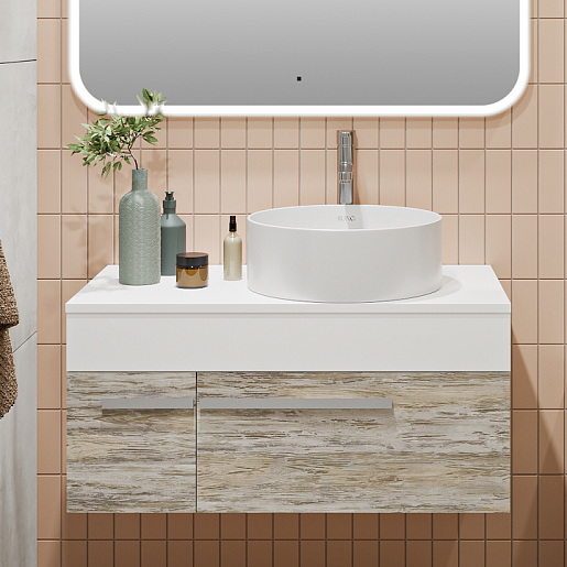 Тумба под раковину Вудлайн 85 скандинавский дуб/белая