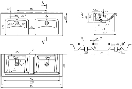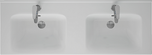 - Керамическая раковина с двумя чашами и слив-переливом.