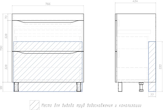 - 2 выдвижных ящика.