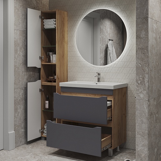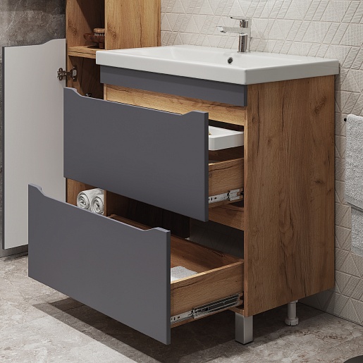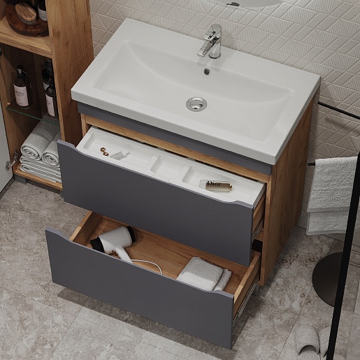 Напольная тумба с раковиной Vigo Wave 800-0-2 - арт. 385 дуб золотой / S-UM-COM80/1-w VIGO.