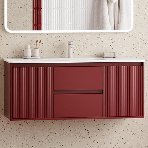 Подвесная тумба с раковиной Brevita Wine 120 бордовая - арт. Win-09120-04-01-2Я / B-OND120-01.