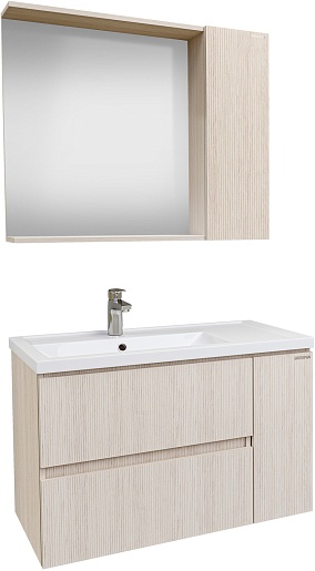 В комплекте: тумба, раковина, зеркальный шкаф, крепеж.