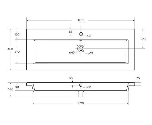 Cezares Мебельная раковина 121/46 CZR-8070-120 белая глянцевая