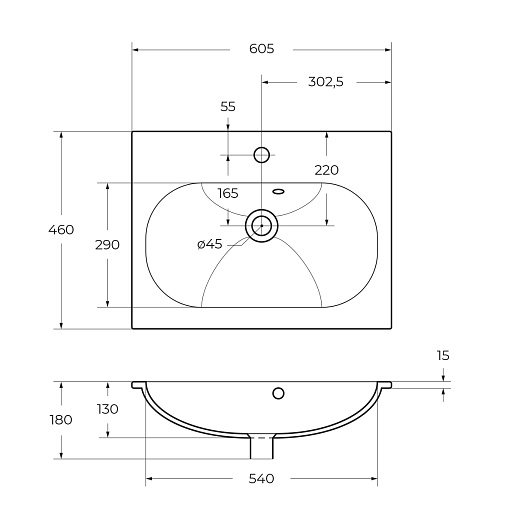Раковина керамическая.Декоративная накладка перелива выполнена в хроме.