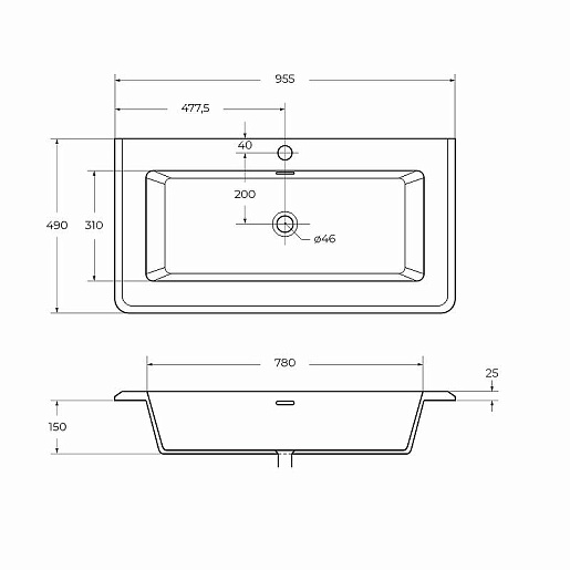 Расположение смесителя-ПосерединеГотовые отверстия под смеситель-1